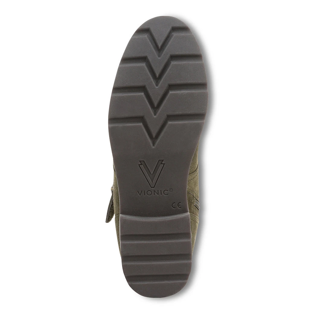 The Catina boots feature a stylish lace-up closure with a decorative buckle on top, adding a touch of flair to the design. With Vionics signature support, these boots deliver both fashion and comfort for all-day wear.